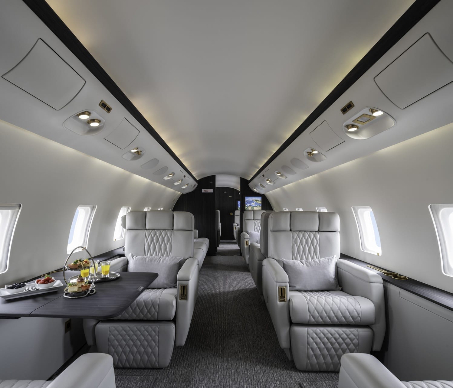 In the world of private corporate aviation, interior designs must be of a consistently outstanding quality. This is typified in our Challenger 850 fleet of private jets, and 9H-BOO is no exception. Highlights include seats and divans upholstered in grey leather and tailored to complement the cabin’s sleek modern lines, and high-end surfaces elegantly adorned in dark grey wood.