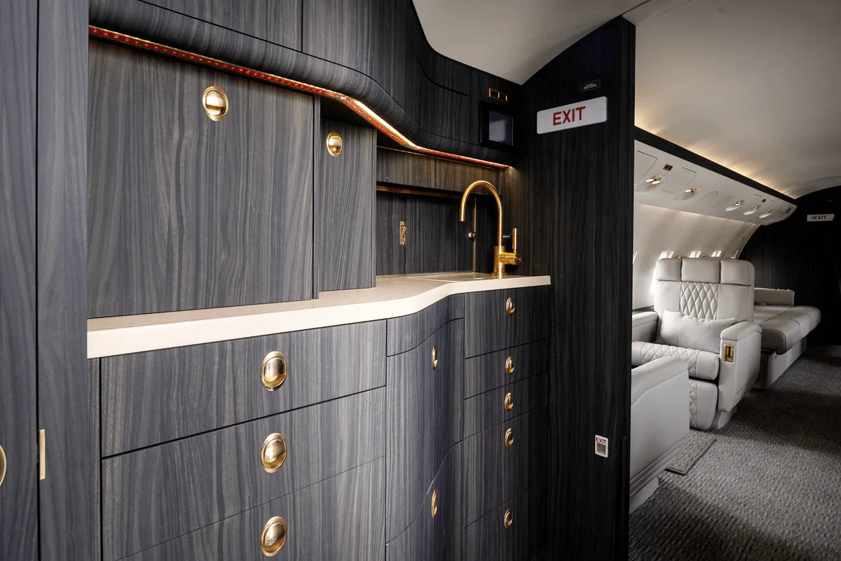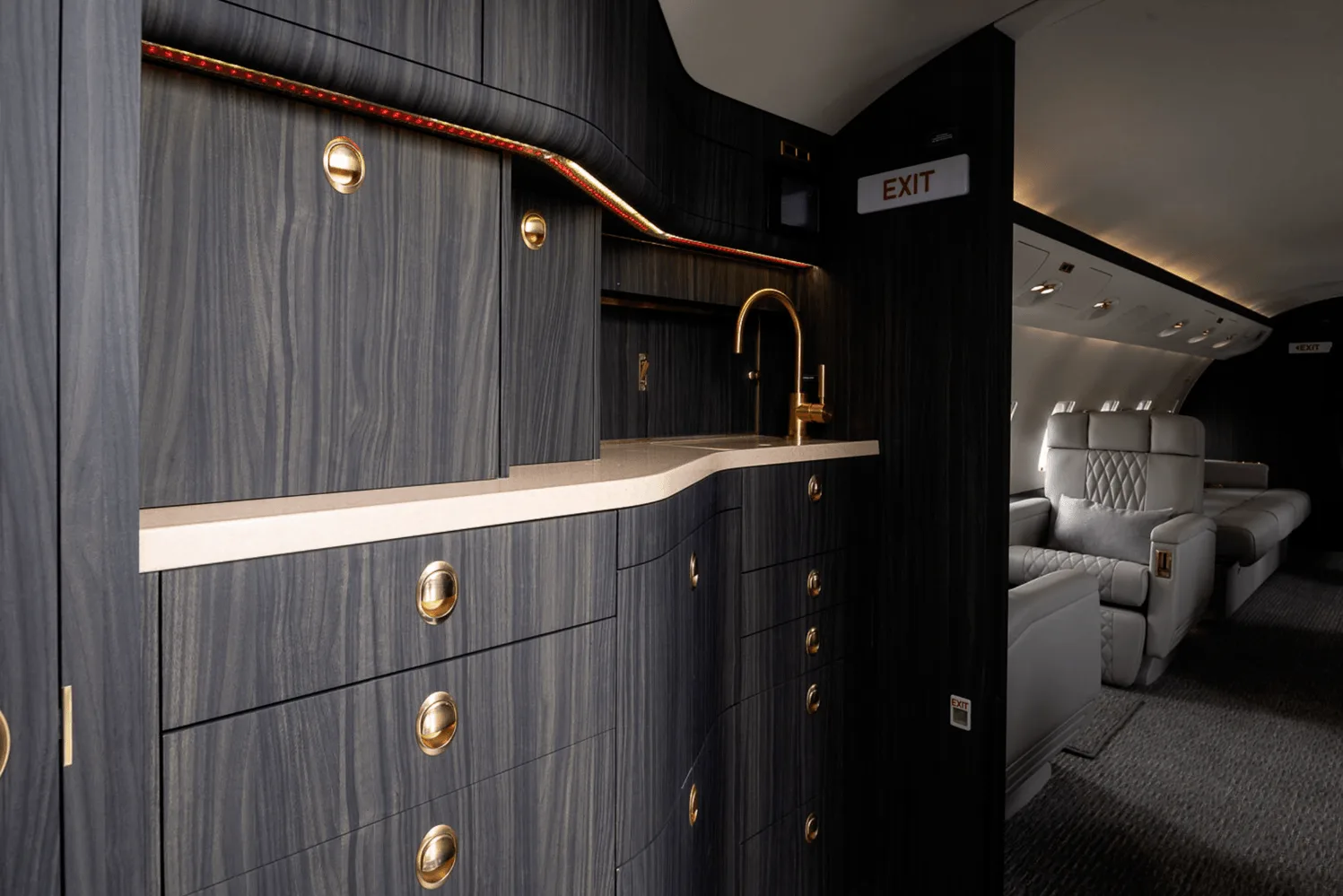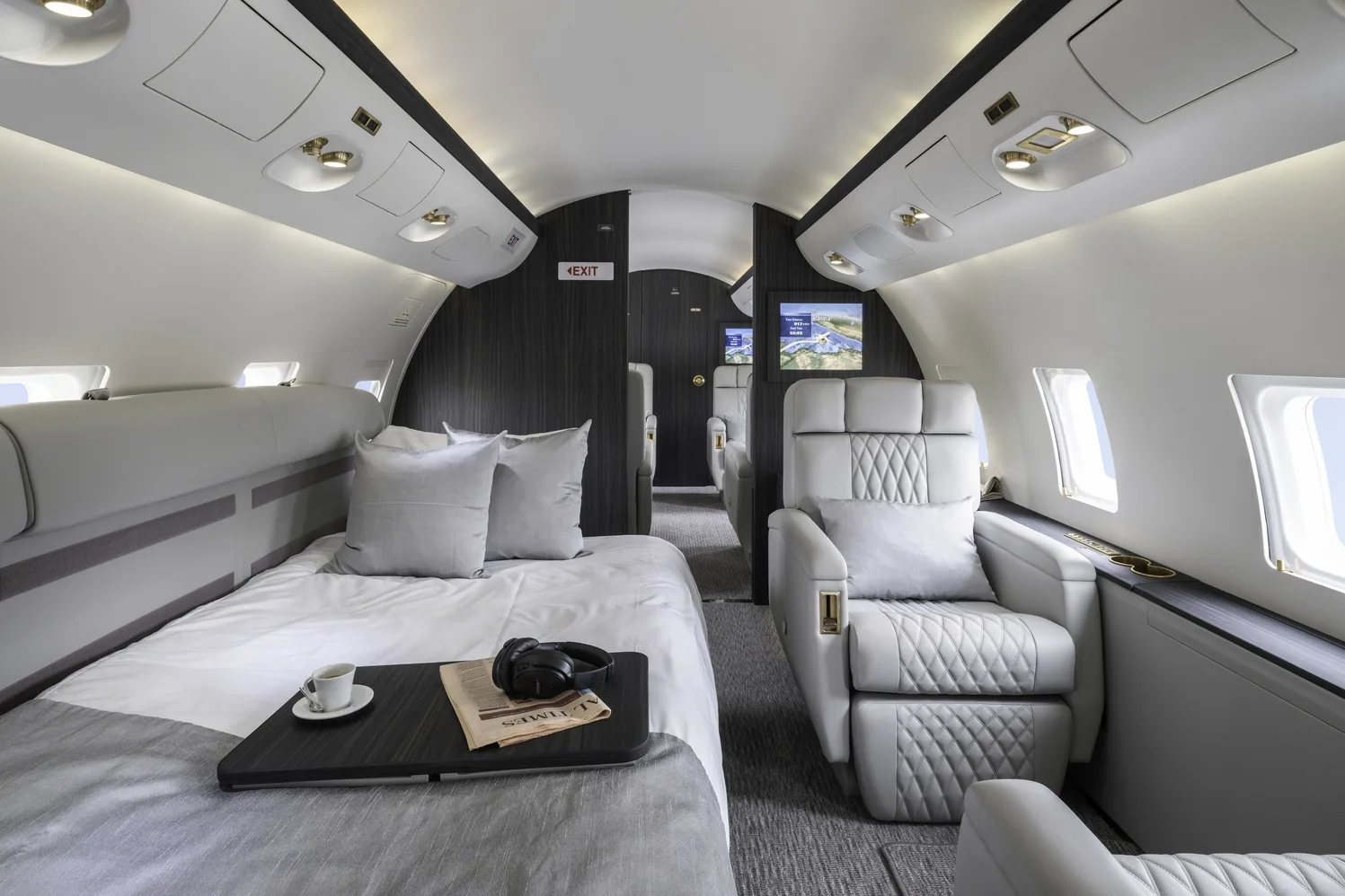 In the world of private corporate aviation, interior designs must be of a consistently outstanding quality. This is typified in our Challenger 850 fleet of private jets, and 9H-BOO is no exception. Highlights include seats and divans upholstered in grey leather and tailored to complement the cabin’s sleek modern lines, and high-end surfaces elegantly adorned in dark grey wood.