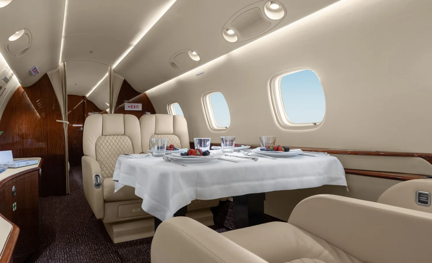 9H-WFC’s interior exudes the type of sophistication expected of private jets, from the lavish upholstered seats to the sleek and streamlined design. Passengers can make extensive use of a spacious cargo hold, conference table and a galley with oven and microwave. We also pride ourselves on an impeccable in-flight service that can be easily tailored to passengers’ tastes and requirements.